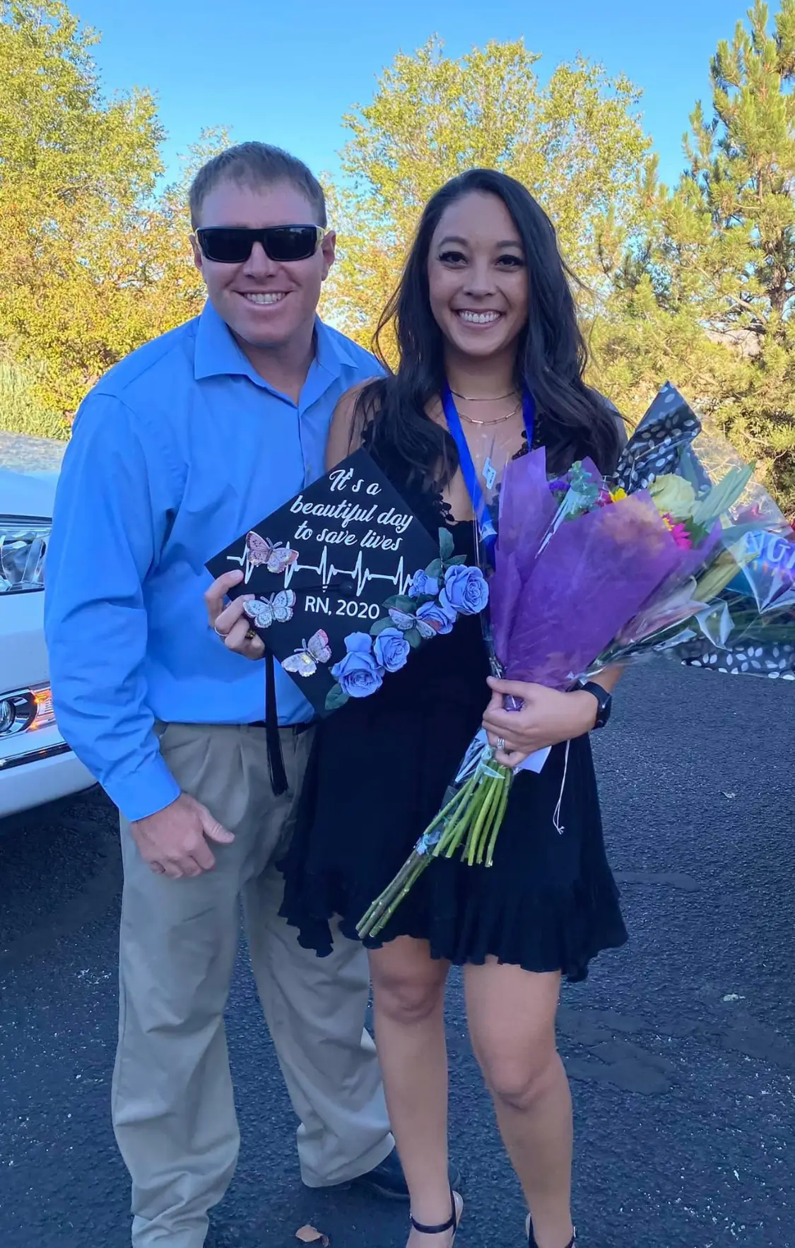 I was assigned to Renown South Meadows in the ICU for my externship in school. Because I came from working in emergency critical care in the vet field, I knew that’s where I wanted to be. It’s fast paced and requires critical thinking. Luckily, I got it! That’s when I left my vet job for the externship and started in June 2020 in the first few months of COVID. I dealt with people dying every day; but I didn’t want to be anywhere else. It solidified where I wanted to be.